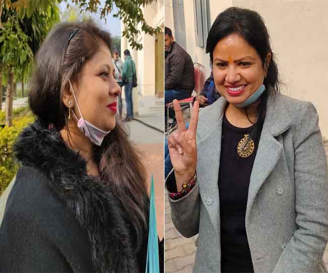 पंचकूला में वार्ड तीन से जीतीं ऋतु गोयल और वार्ड चार से विजयी सोनिया सूद। (जागरण)