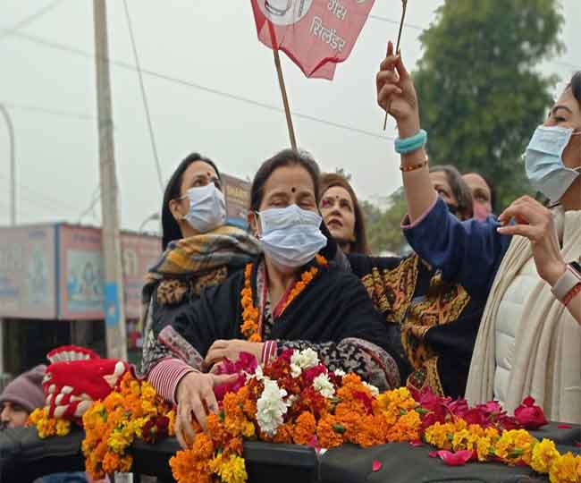 अंबाला में मेयर पद पर जीत के बाद रोड शो करतीं शक्ति रानी शर्मा। (जागरण)