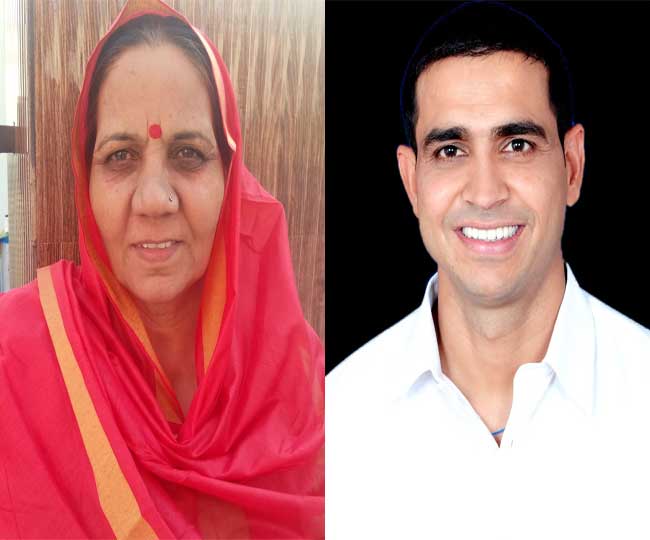 जेजेपी के महिला प्रकोष्ठ की अध्यक्ष शीला भ्याण और युवा प्रकोष्ठ के अध्यक्ष रविंद्र सांगवान।