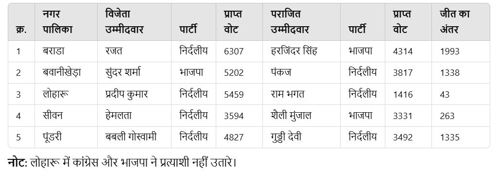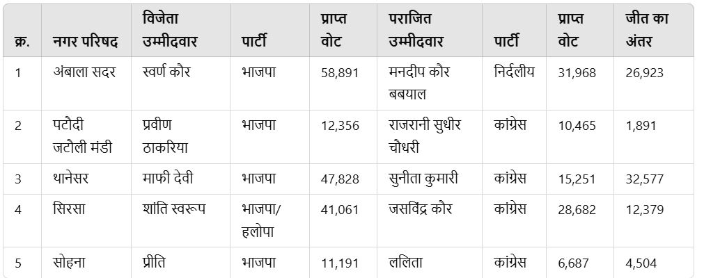 हरियाणा नगर पालिका चुनाव रिजल्ट 2025 (Haryana Nagar Palika Chunav Result 2025)
