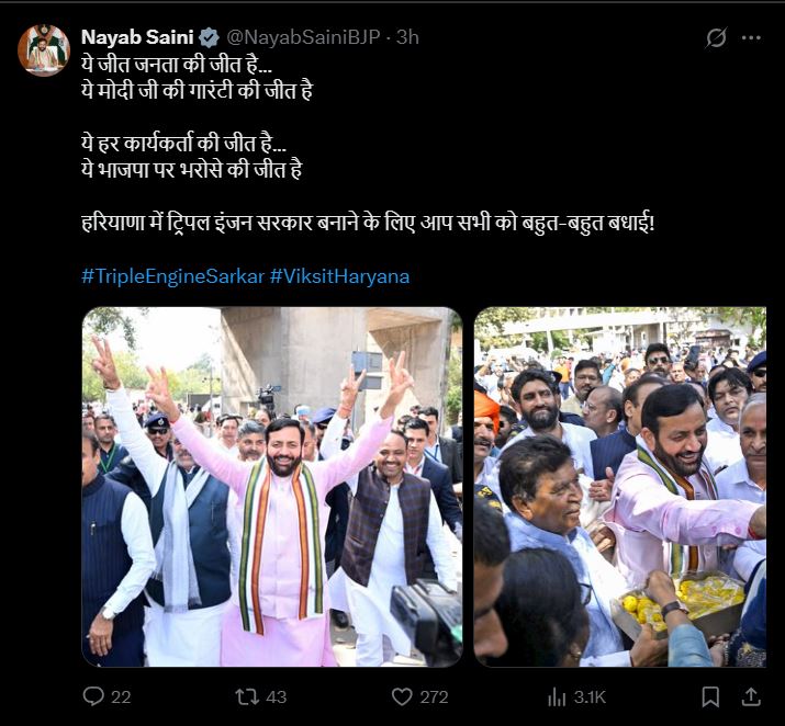 फोटो: नायब सैनी ने एक्स पर किया पोस्ट