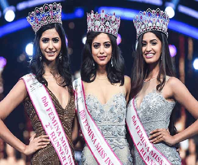 एफबीबी फेमिना मिस इंडिया का खिताब जीतने के बाद मनुषि चिल्लर (बीच में)।
