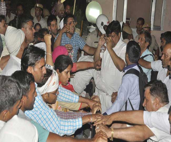 जेएनएन,पंचकूला। नियुक्ति पत्र की मांग कर रहे एचटेट 2013 के जेबीटी अभ्यर्थियों ने मंगलवार देर रात तक यहां सेक्‍टर पांच स्थित शिक्षा सदन का घेराव किया। उन्‍होंने कई घंटों तक अधिका‍िरियों अौर कर्मचारियों काे शिक्षा सदन में कैद रखा। साढ़े तीन घंटे बाद पुलिस ने जेबीटी शिक्षकों पर हल्का लाठीचार्ज किया और काफी संख्‍या मेंं जेबीटी शिक्षकों को गिरफ्तार कर कर्मचारियों को मुक्‍त कराया।