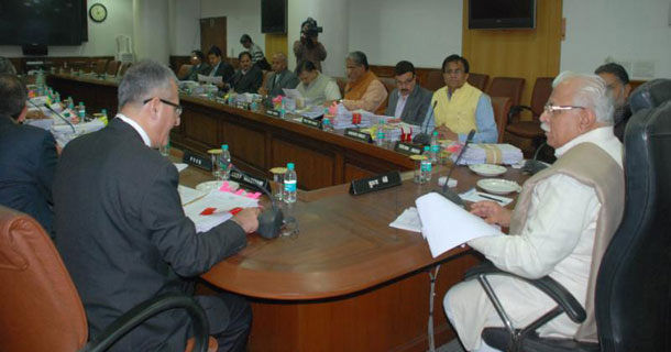 हरियाणा कैबिनेट की बैठक का दृश्य।