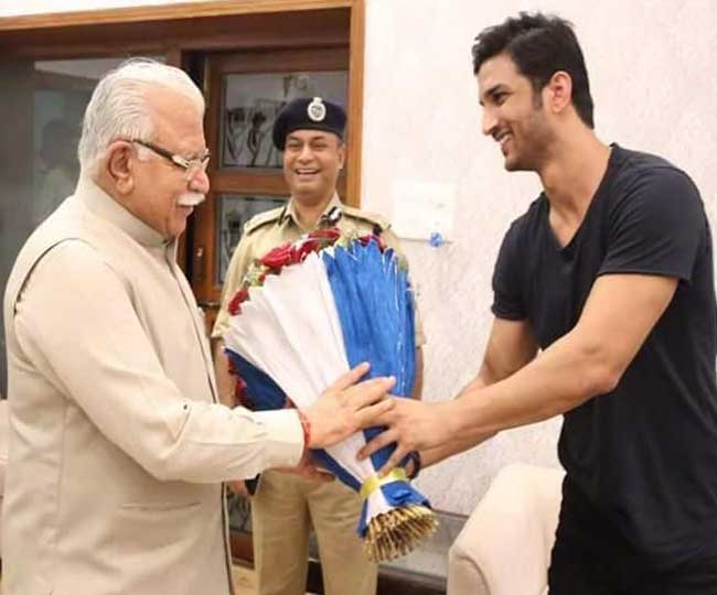 हरियाणा के मुख्यमंत्री मनोहरलाल के साथ सुशांत सिंह राजपूत।(फाइल फोटो)