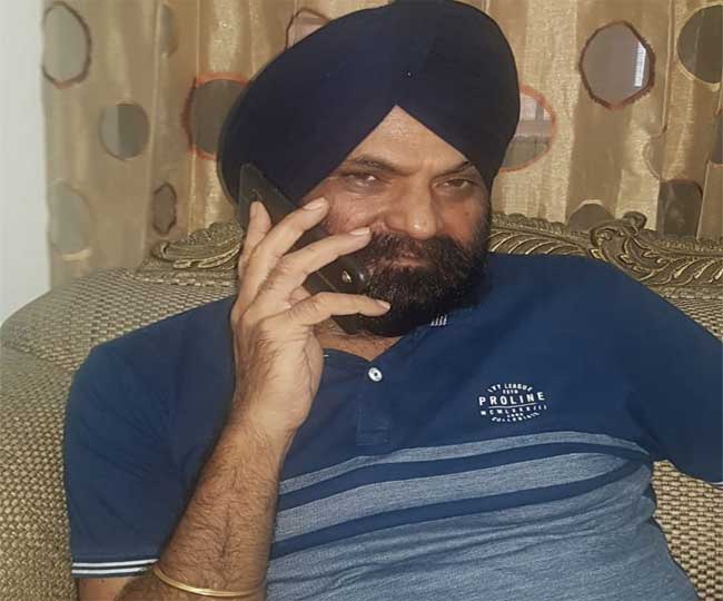 कामगारों से मोबाइल फोन पर बात करते पानीपत के उद्यमी प्रीतम सचदेवा।