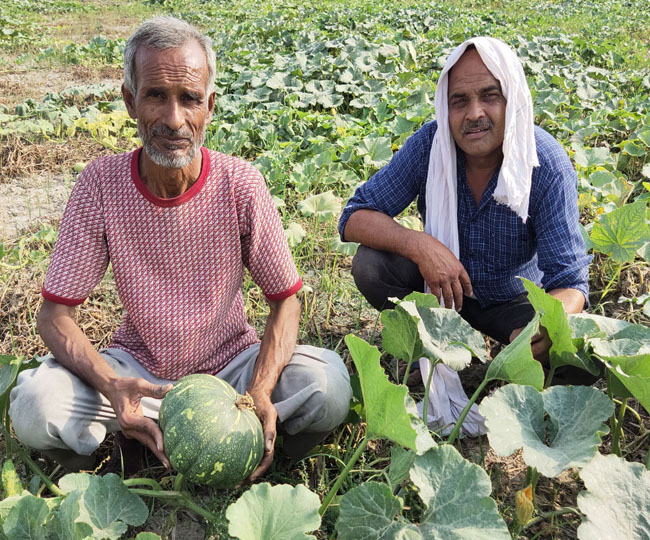 पानीपत के सनौली खुर्द में कददू की खेती की जा रही है।
