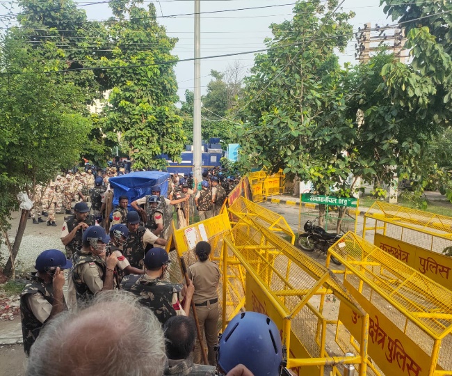 किसान नेताओं के जाते ही पुलिस प्रशासन अलर्ट हो गए हैं। सभी सुरक्षा बलों को भी अलर्ट रहने के लिए कहा गया हे। साथ ही लघु सचिवालय में भी बैरिकेड्स लगा दिए गए हैं। वहीं, किसान नेताओं के पहुंचने पर लघु सचिवालय की किलेबंदी कर दी गई थी। सुरक्षा व्यवस्था बढ़ा दी गई थी। बिल्डिंंग की तरफ आने जाने वाले रास्तों पर सुरक्षा के पुख्ता इंतजाम किए गए थे।
