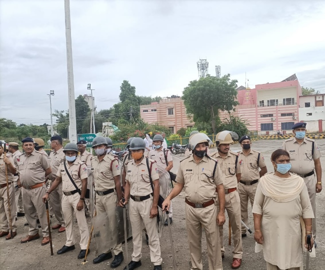 कुरुक्षेत्र रेलवे स्‍टेशन पर मोर्चा संभाले पुलिसकर्मी।