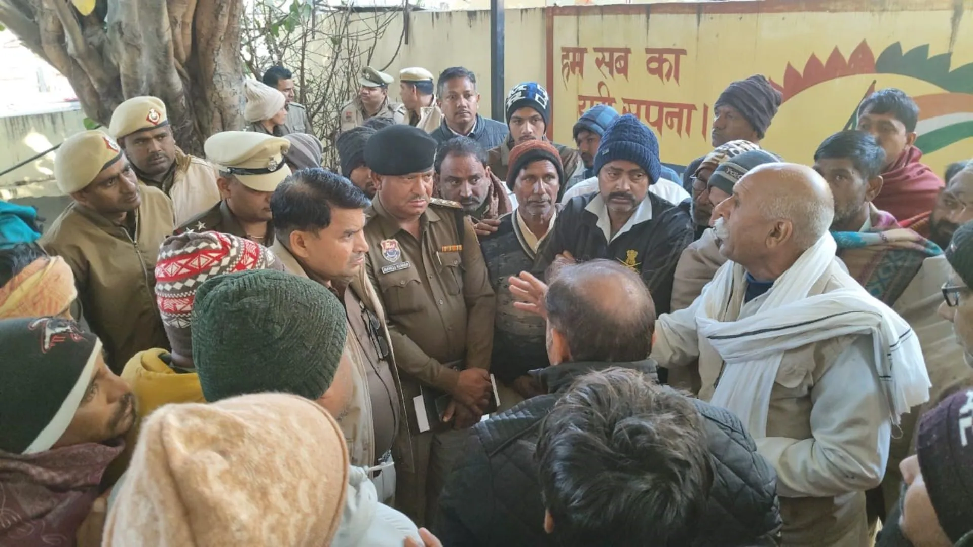 घटना के बारे में लोगों से पूछताछ करती पुलिस। जागरण