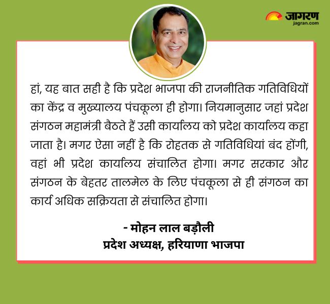 अब प्रदेश संगठन मंत्री अधिकतर समय पंचकूला में बैठेंगे। ऐसे में पंचकूला को ही भाजपा प्रदेश कार्यालय के नाम से पुकारा जाएगा। हालांकि रोहतक से कार्यालय का संचालन जारी रहेगा।