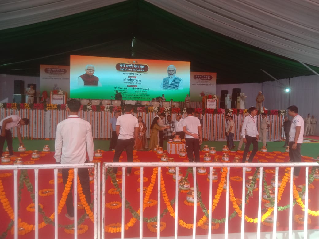 मुख्यमंत्री मनोहर लाल प्रदेशभर से आने वाले इन कलशों से मिट्टी इकट्ठी करके मंच के पीछे 250 गज में विकसित की जा रही अमृत वाटिका में अपने हाथों से डाला। राज्यभर से लोग कलशों में मिट्टी लाए हैं।