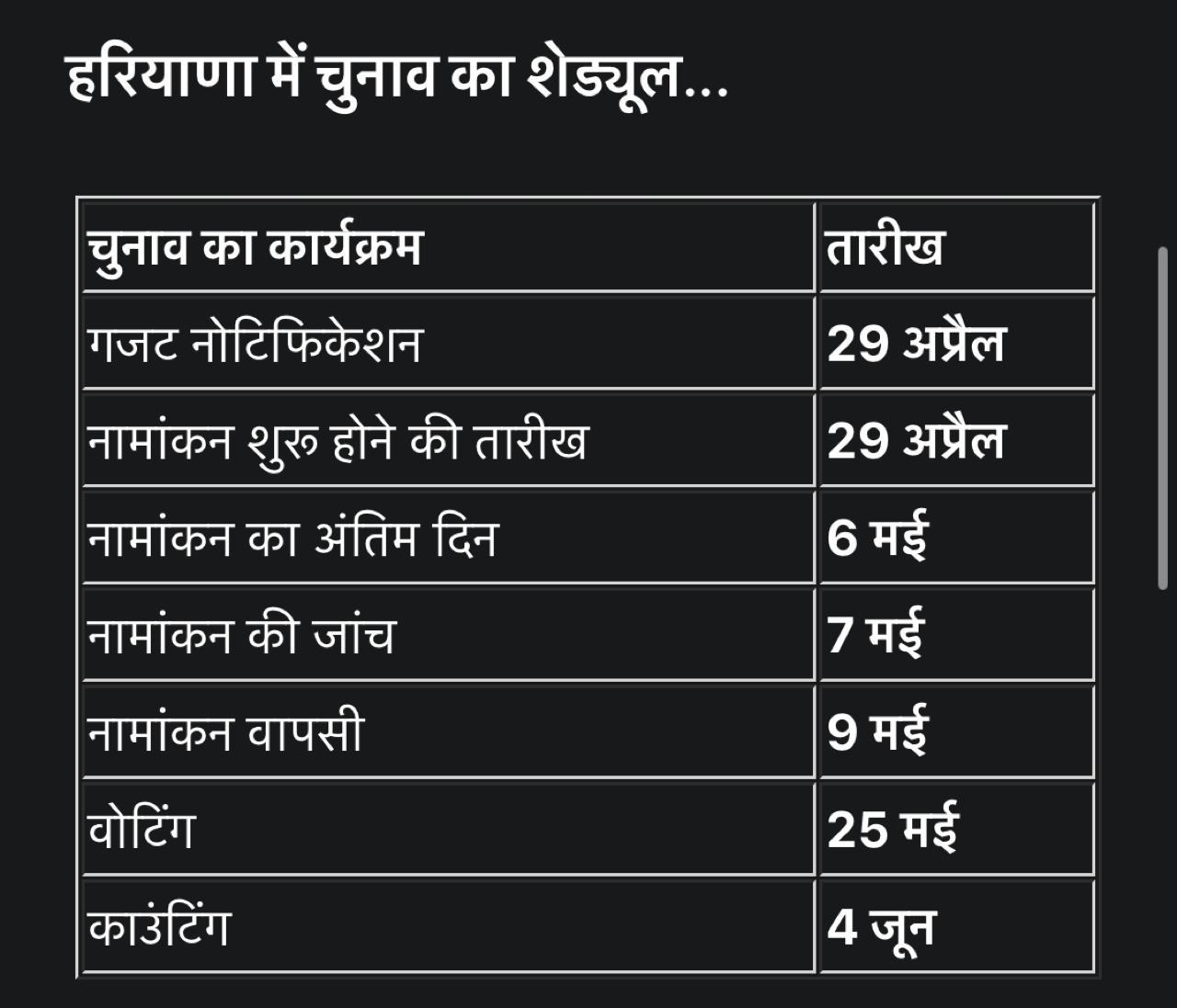हरियाणा की इन 10 लोकसभा सीटों पर होगा मतदान