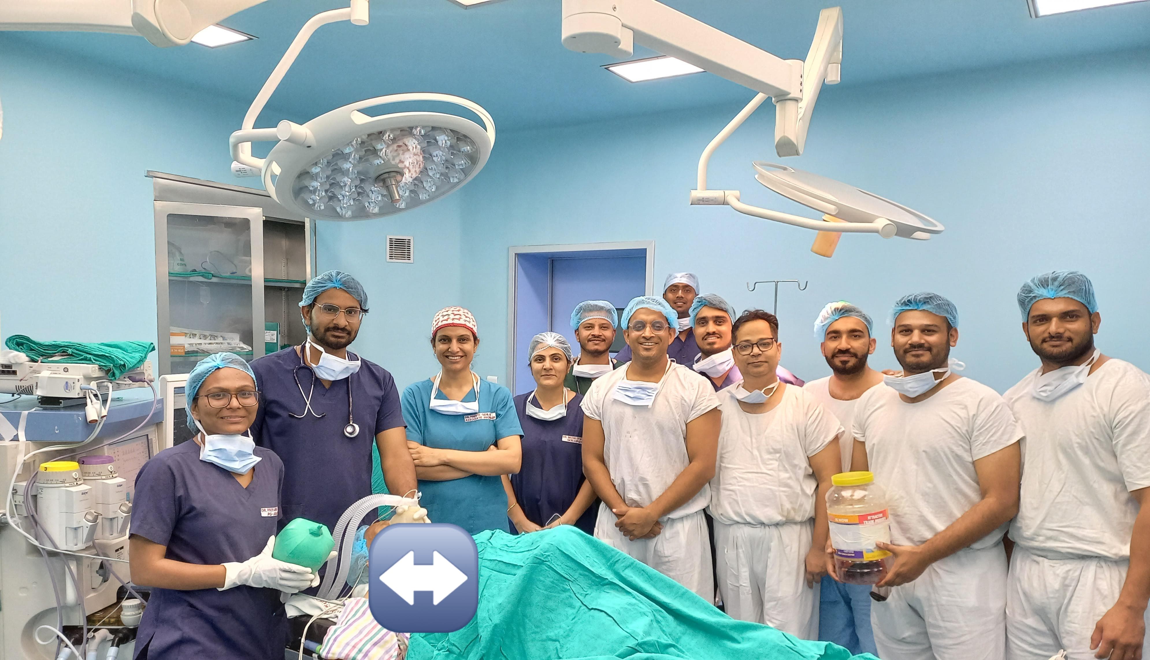 फोटो कैप्शन: रोहतक के पीजीआइएमएस में मरीज के सफल ऑपरेशन के बाद डॉक्टरों की टीम। सौ. डॉक्टर