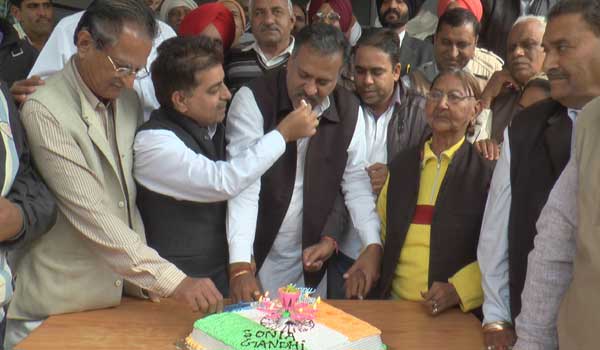 केक काटते नवी केडिया व अन्य कांग्रेस नेता।