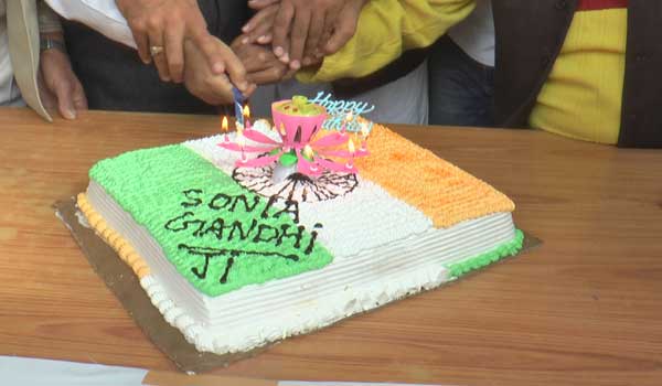 कांग्रेस भवन में बुधवार को सोनिया गांधी के जन्मदिन पर केक काटने का कार्यक्रम रखा। प्रदेश कांग्रेस महासचिव नवीन केडिया व सचिव शीशपाल केहरवाला की मौजूदगी में केक काटा गया। केक पर तिरंगे जैसी आकृति थी। केसरिया रंग के साथ ही केक पर अशोक चक्र की भांति आकृति बनाई गई थी। केक के ऊपर तिरंगे की तरह ही आकृति बनाई गई है और इसी आकृति के ऊपर फूल लगाया गया है। केक की चक्र आकृति में 21 तीलियां भी नजर आ रही हैं जो अशोक चक्र की भांति ही बनाई गई हैं।
