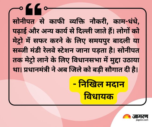 सोनीपत में मेट्रो आने से विकास को लगेंगे पंख, दिल्ली के साथ गुरुग्राम, फरीदाबाद और नोएडा आना जाना होगा आसान