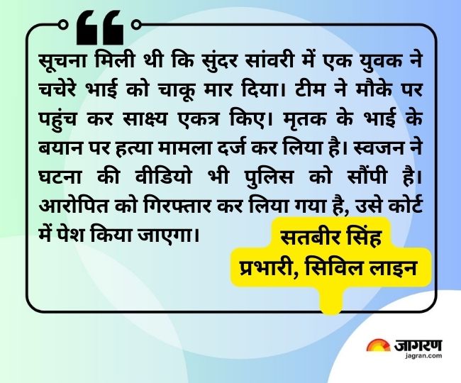 सोनू ने बताया कि रात को उसका भाई विजय अपने दोस्त मोनू के साथ पवन की दुकान के निकट खड़ा था। इसी दौरान चचेरा भाई आशु वहां पहुंच गया। वह फिर से उसके साथ झगड़ा करने लगा। विरोध करने पर उसने चाकू निकालकर छाती में मार दिया। चाकू लगने के बाद विजय नाली में गिर गया। आशु मौके से फरार हो गया। उसने तुरंत अपने भाई को संभाला।