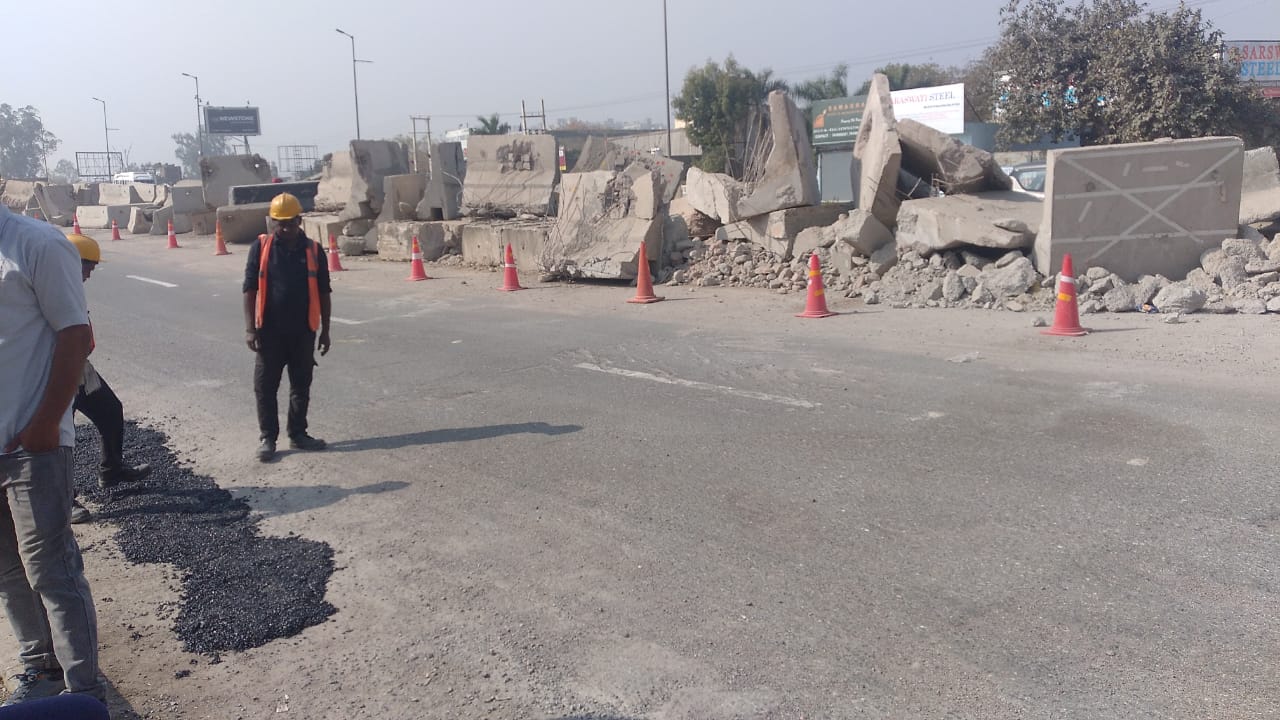 एनएच-44 पर कुंडली बॉर्डर पर हाईवे रविवार दोपहर को पूरी तरह से खुल गया है। शनिवार शाम तक दिल्ली से पानीपत जाने वाली सड़क की दोनों लेन से कंक्रीट के बैरिकेड्स को तोड़कर पूरी तरह से साफ किया जा चुका था। इस सड़क की सफाई की जा रही थी।