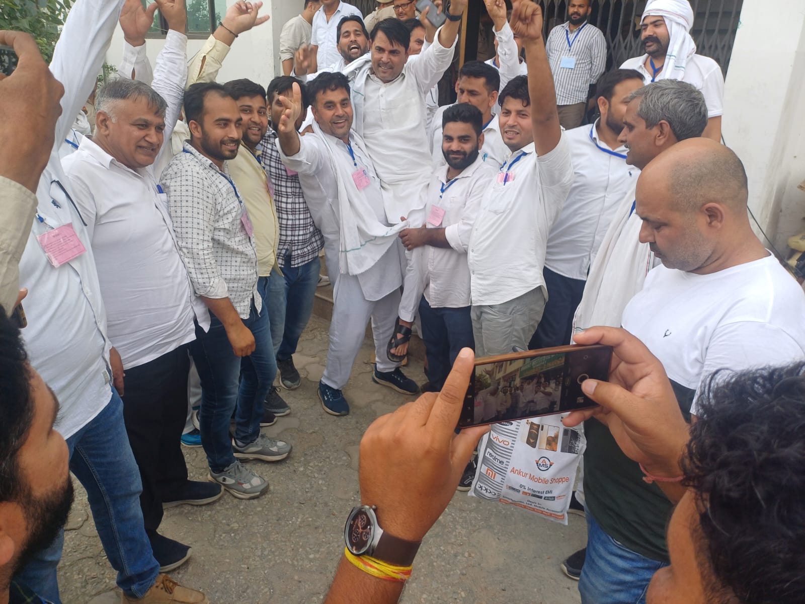 - मतगणना केंद्र के बाहर गाड़ी की छत पर चढ़कर जश्न मनाते कांग्रेस के कार्यकर्ता सोनीपत
