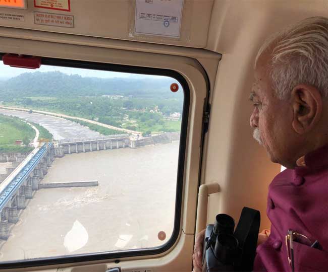 मुख्यमंत्री मनोहरलाल ने यमुना नदी में उफान और बाढ़ का हवाई सर्वे किया