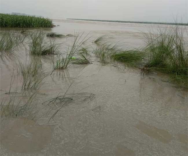 पानीपत के तामसाबाद गांव के पास यमुना नदी का विकराल रूप।