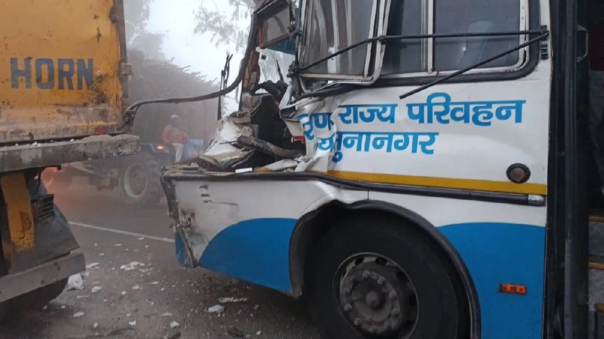 यमुनानगर: घने कोहरे में औरंगाबाद के पास रोडवेज बस ट्रक से टकराई, कंडक्टर सहित चार घायल