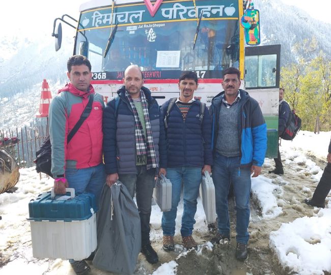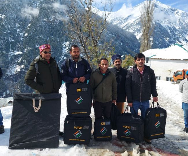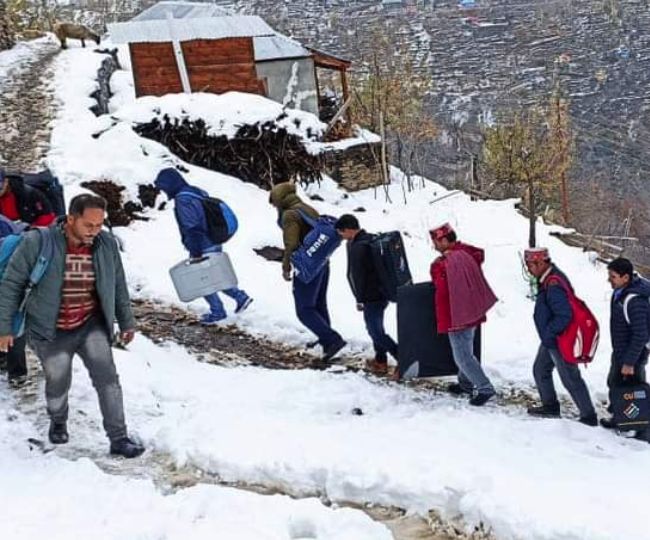 Himachal Election 2022: बर्फ में ढके मतदान केंद्र, 15 किलोमीटर पैदल चलकर पहुंची पोलिंग टीम, देखिए तस्वीरें