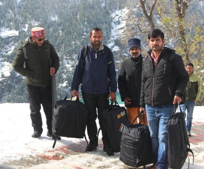 Himachal Election 2022 Snowfall In Himachal हिमाचल प्रदेश विधानसभा चुनाव प्रचार थम गया है। पोलिंग पार्टियां मतदान केंद्रों के लिए रवाना हो गई हैं। हिमाचल के जनजातीय क्षेत्रों में बर्फबारी ने दिक्कत बढ़ाई है। पोलिंग पार्टियां बर्फ के बीच मतदान केंद्रों तक पहुंची।