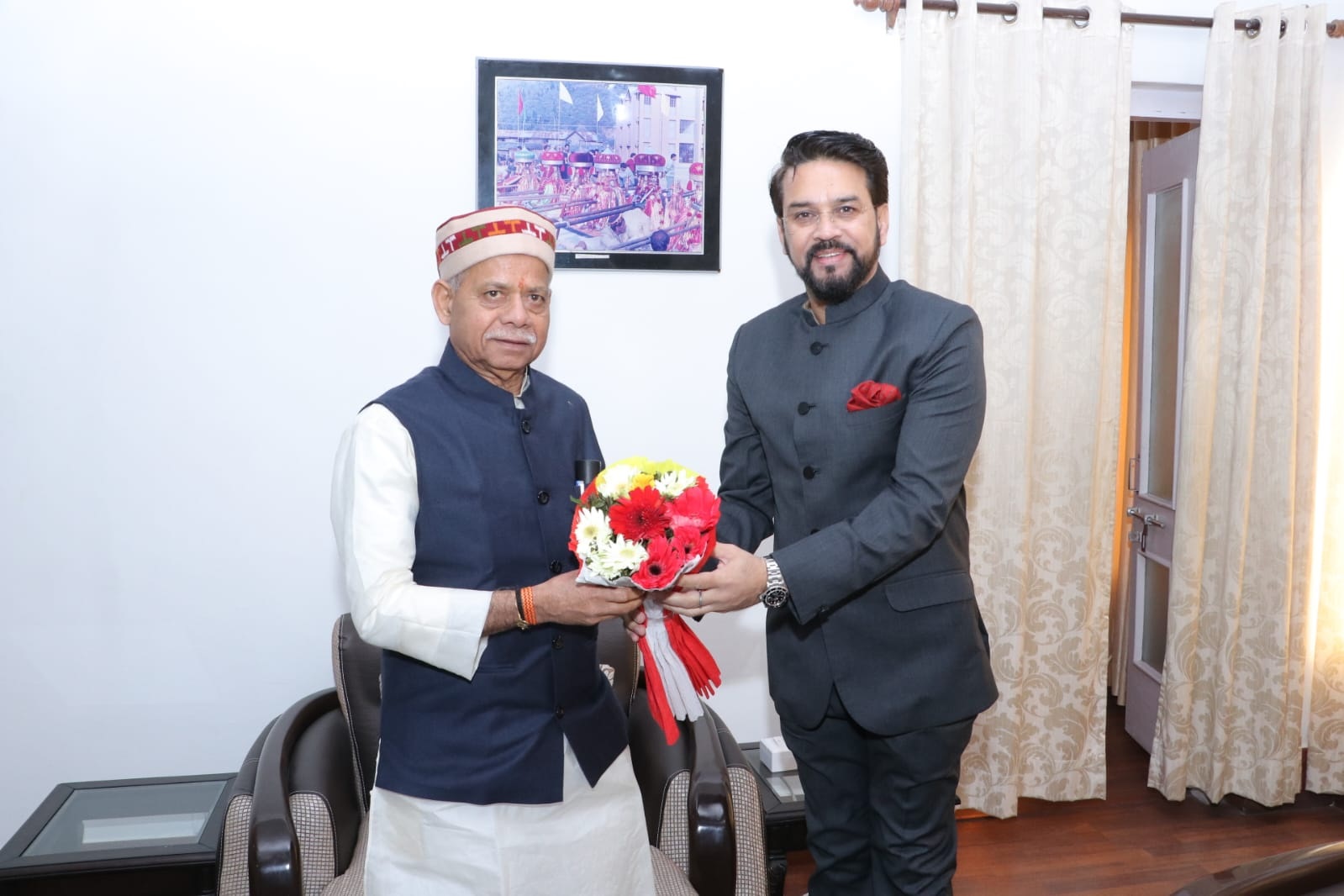 इस बीच केंद्रीय सूचना प्रसारण युवा सेवाएं खेल मंत्री अनुराग ठाकुर तथा मंत्री राजेश धर्माणी भी हमीरपुर में मौजूद हैं। उनका स्वागत हमीरपुर सर्किट हाउस में राज्यपाल ने किया।