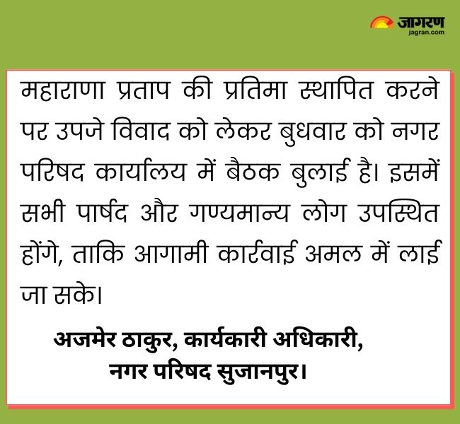 उन्होंने कहा कि दुर्भाग्यपूर्ण है कि आज भी हमें अपने महापुरुषों के सम्मान में लगने वाले प्रतीकों का विरोध झेलना पड़ रहा है। उन्होंने मांग की है कि जिला प्रशासन और सुजानपुर नगर परिषद को किसी के दबाव में न आकर मूर्ति को चिह्नित स्थान पर ही लगाना चाहिए।