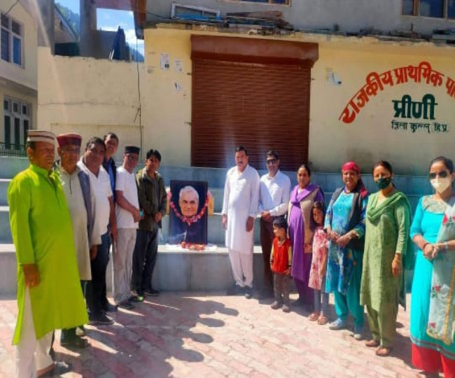 मनाली के प्रीणी गांव में स्वर्गीय अटल बिहारी वाजपेयी को श्रद्धांजलि देते गांव के लोग। ग्रामीण उन्हें अपना मुखिया मानते थे।
