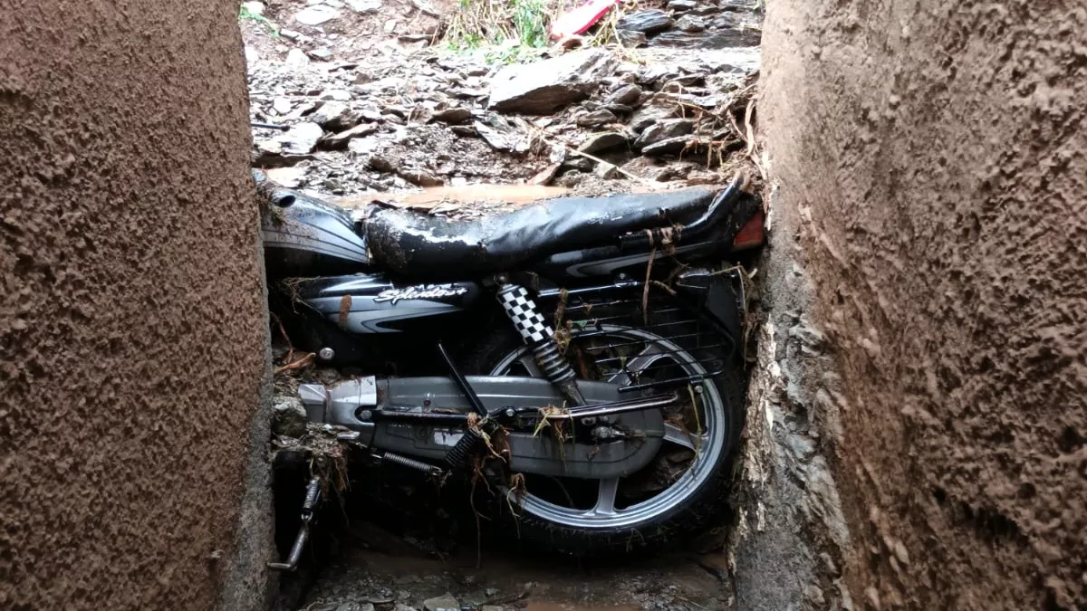 चुवाड़ी के त्रिमथ में भी भारी बारिश से काफी नुकसान हुआ है। पानी के बहाव से दो कारें और एक बाइक मलबे में दब गई हैं। कारों को जेसीबी व स्थानीय लोगों की मदद से निकाल लिया गया है। बाइक दो घरों की दीवारों के बीच में अटक गई है।