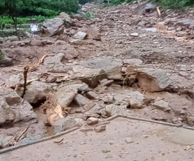 Cloud Burst in Bilaspur, बिलासपुर जिले के कुहमझवाड़ पंचायत के भगोट गांव में बादल फटने शुक्रवार सुबह बड़ी तबाही मच गई है। बादल फटने की इस घटना के बाद पणगेल नाले में एकाएक भारी मात्रा में मलबे क रूप में पत्थर और मिट्टी, पेड़ पानी के साथ बह कर आना शुरू हो गए। सुबह चार बजे के करीब मची इस तबाही में गांव में तीन परिवारों के घरों, पशुशालाओं को नुकसान पहुंचा है।
