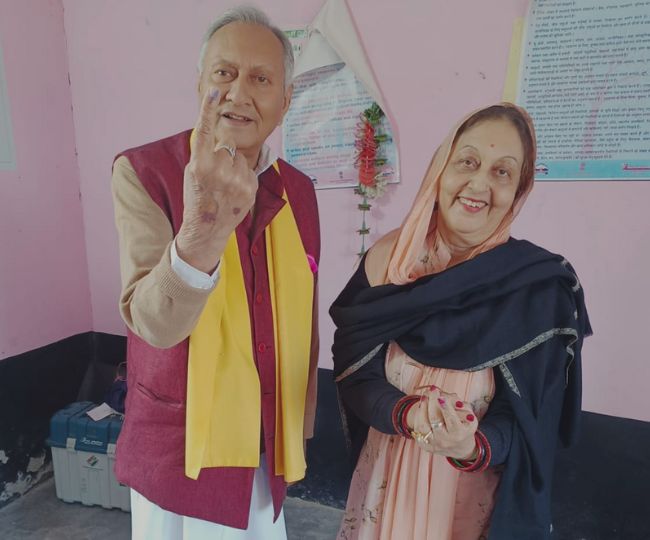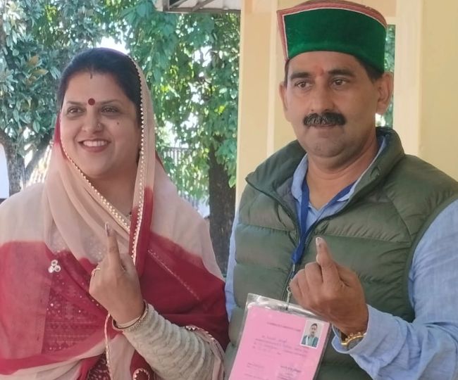 मेजर विजय सिंह मनकोटिया व उनकी पत्नी जयश्री सिंह मनकोटिया ने रछ्यालु में मतदान किया।
