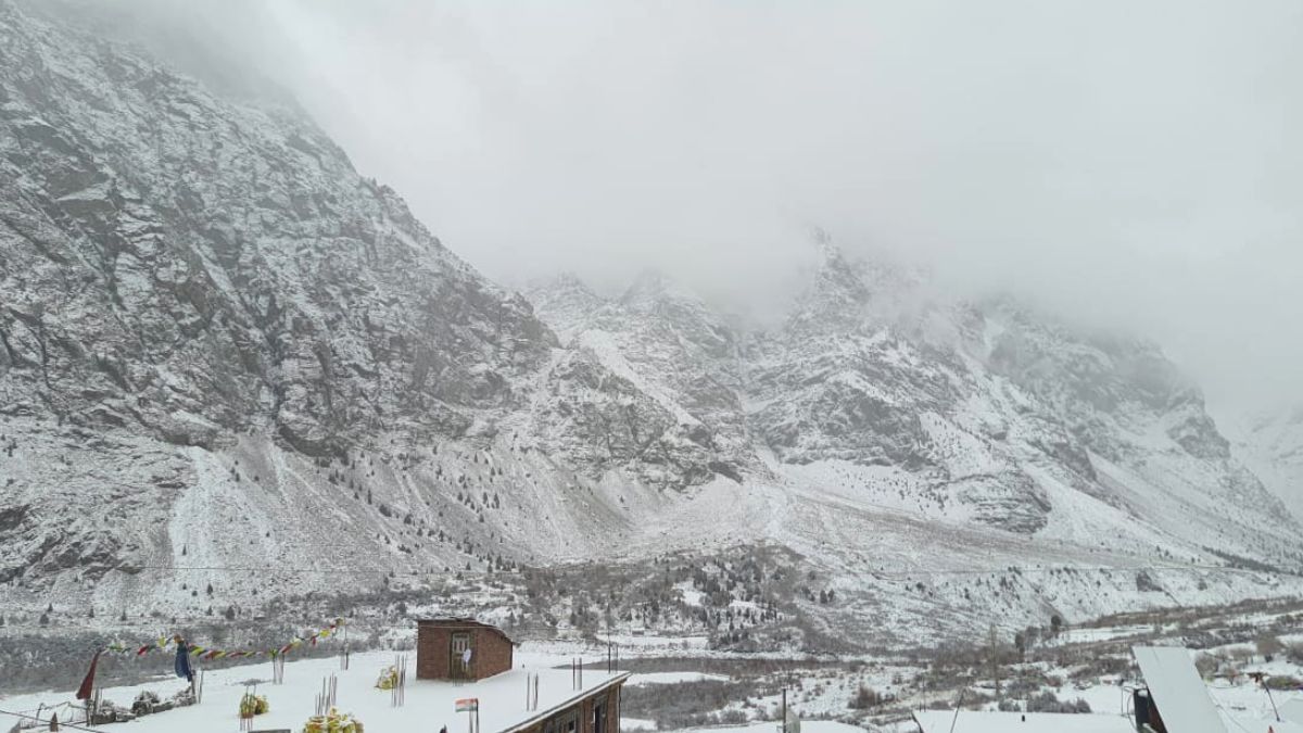 लाहुल स्पीति की जिस्पा घाटी में सोमवार सुबह हुआ ताजा हिमपात। घाटी में तापमान जमाव बिंदु से नीचे चला गया है। लोग घरों में कैद हो गए हैं।