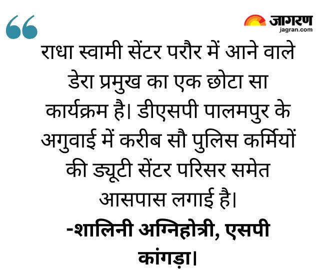 परौर आने पर भी फिलहाल यहां किसी भी प्रकार का कोई सत्संग का कार्यक्रम नहीं है। संगत को सत्संग पंडाल में दर्शन के लिए बिठाया जाएगा। कार्यक्रम के बाद वह परौर सेंटर के अधीन कार्यों का जायजा लेंगे। इसके बाद डलहौजी चले जाएंगे। व्यास से बाबा गुरेंद्र सिंह ढिल्लों व जसदीप सिंह गिल (Jasdeep Singh Gill) हेलीकॉप्टर से यहां पहुंचेंगे।