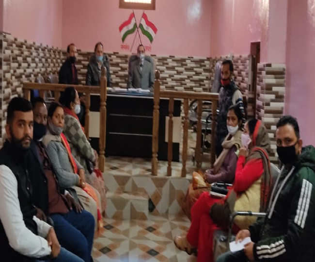 बैजनाथ पपरोला नगर पंचायत में सभी 11 विजयी उम्मीदवारों ने पार्षद की शपथ ली। कोरम पूरा न होने के कारण नहीं हो पाई बैठक। अब 21 जनवरी को होगा अध्यक्ष व उपाध्यक्ष को लेकर फैसला।वार्ड एक से वेदना कुमारी, वार्ड दो से रितु, वार्ज तिन से अमित कपूर, वार्ड चार से चंपा चौधरी, पांच से विनय धीमान, वार्ड छह कांता देवी, वार्ड सात अनीता सूद, वार्ड आठ राजन चौधरी, वार्ड नौ राजेश कलेड़ी, वार्ड दस मुकेश शर्मा व वार्ड ग्यारह से आशा भाटिया ने शपथ ली।