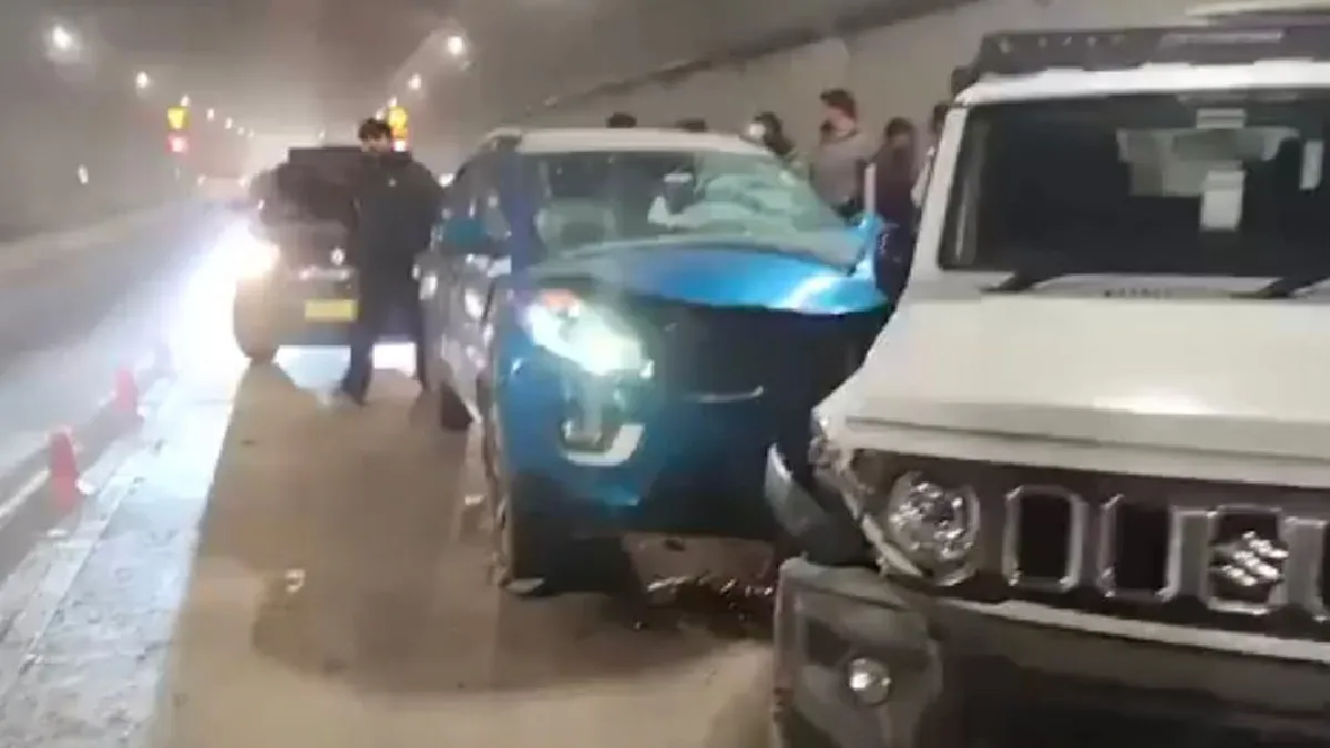 जागरण संवाददाता, कुल्लू। अटल टनल रोहतांग में वीरवार देर शाम चार गाड़ियां आपस में टकरा गईं। हादसे में किसी को चोटें नहीं आई हैं, लेकिन वाहनों को नुकसान पहुंचा है। मिली सूचना के अनुसार, अटल टनल में एक तेज रफ्तार वाहन ने अपने आगे चल रही गाड़ी को टक्कर मार दी। इससे एक साथ तीन और गाड़ियां आपस में टकरा गईं।