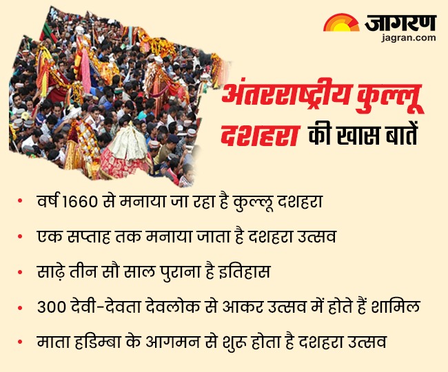 हम बात कर रहे हैं हिमाचल प्रदेश के प्रसिद्ध कुल्लू दशहरा उत्सव की। दरअसल, ऐसा माना जाता है कि यहां 300 से अधिक देवी-देवता भी उत्सव में हिस्सा लेते हैं। यहां करीब एक हफ्ते तक अंतरराष्ट्रीय कुल्लू दशहरा (International Kullu Dussehra) मनाया जाता है। आइए जानते है इसकी कुछ रहस्यमयी बातें।