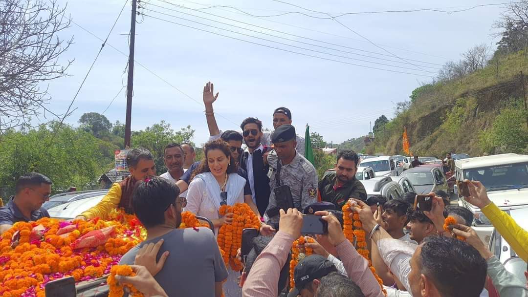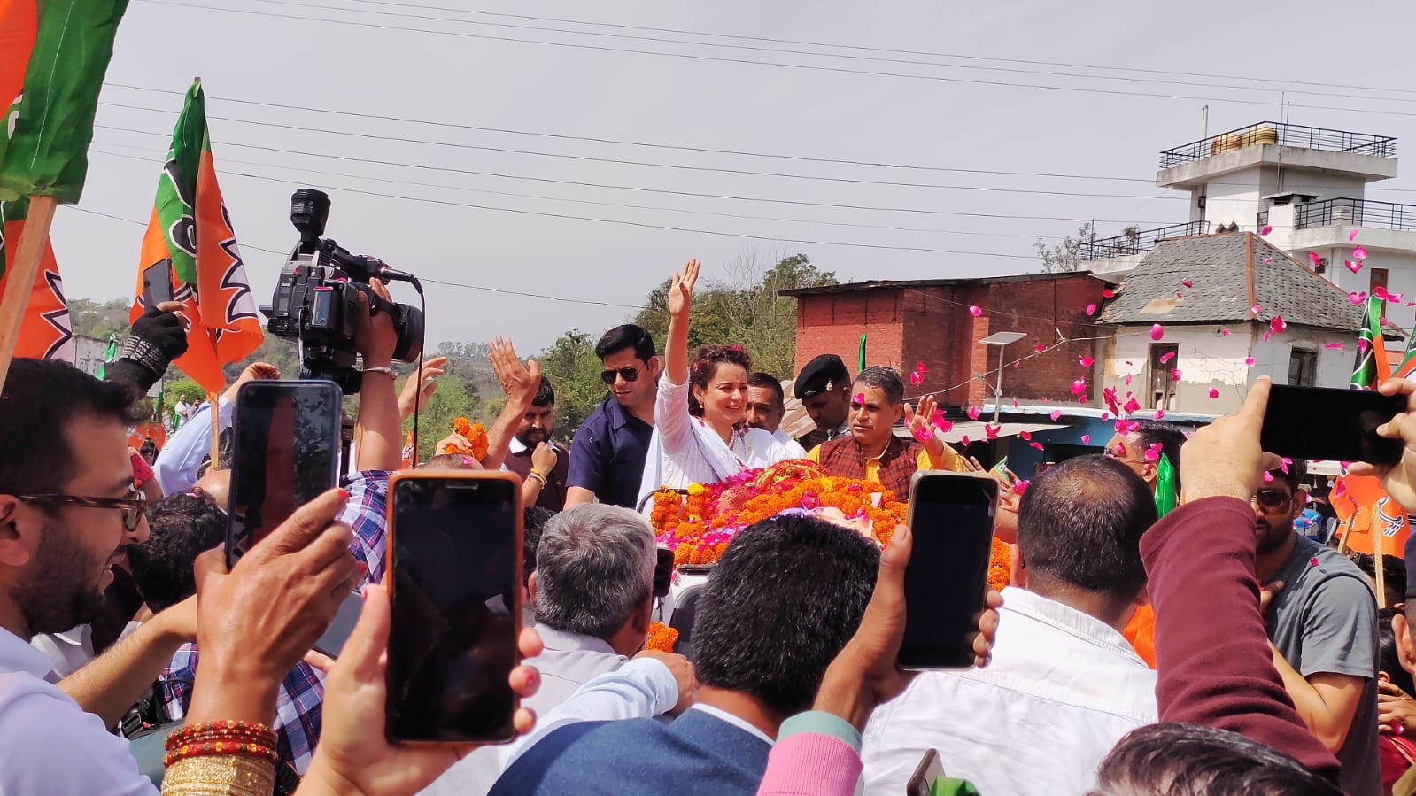 Photo Gallery: मंडी में बीजेपी प्रत्याशी कंगना रनोट का रोड शो देखने उमड़ा हूजूम, जय श्री राम के गूंजे नारे