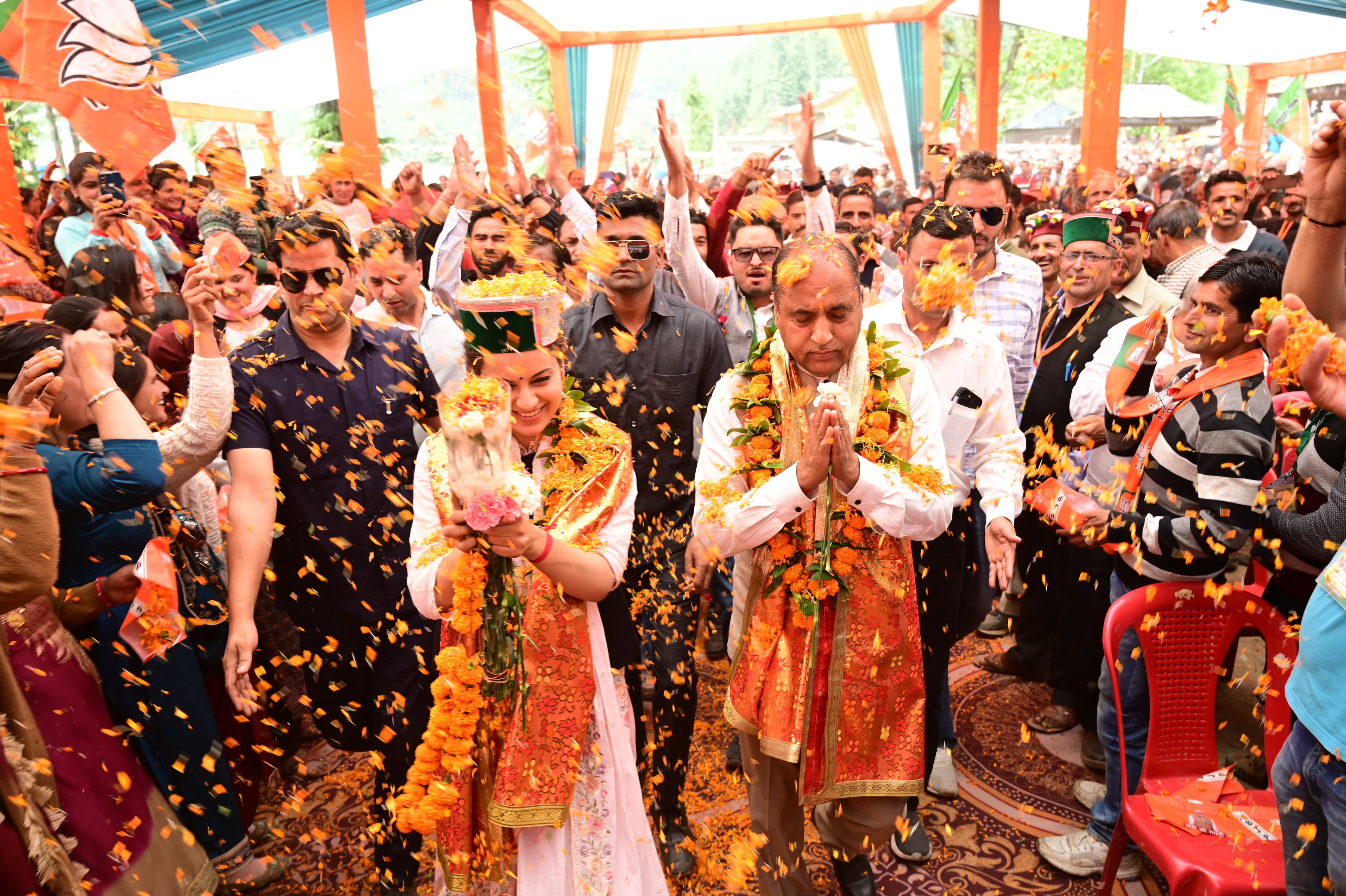 कंगना ने कहा कि उपचुनाव में पार्टी की हार अति आत्मविश्वास की वजह से हुई थी। देश में मोदी नाम की लहर चल रही है। कार्यकर्ताओं को बस दिन रात एक कर मेहनत करनी होगी। इससे पहले कंगना ने नेता प्रतिपक्ष जयराम ठाकुर के साथ थुनाग में रोड शो में भाग लिया। गाड़ी से करीब तीन मिनट तक भाषण दिया। युवाओं ने कंगना रनौत के साथ सेल्फी ली। कंगना ने चुनाव जीतने के बाद मायानगरी मुंबई को छोड़ने की बात भी कही।