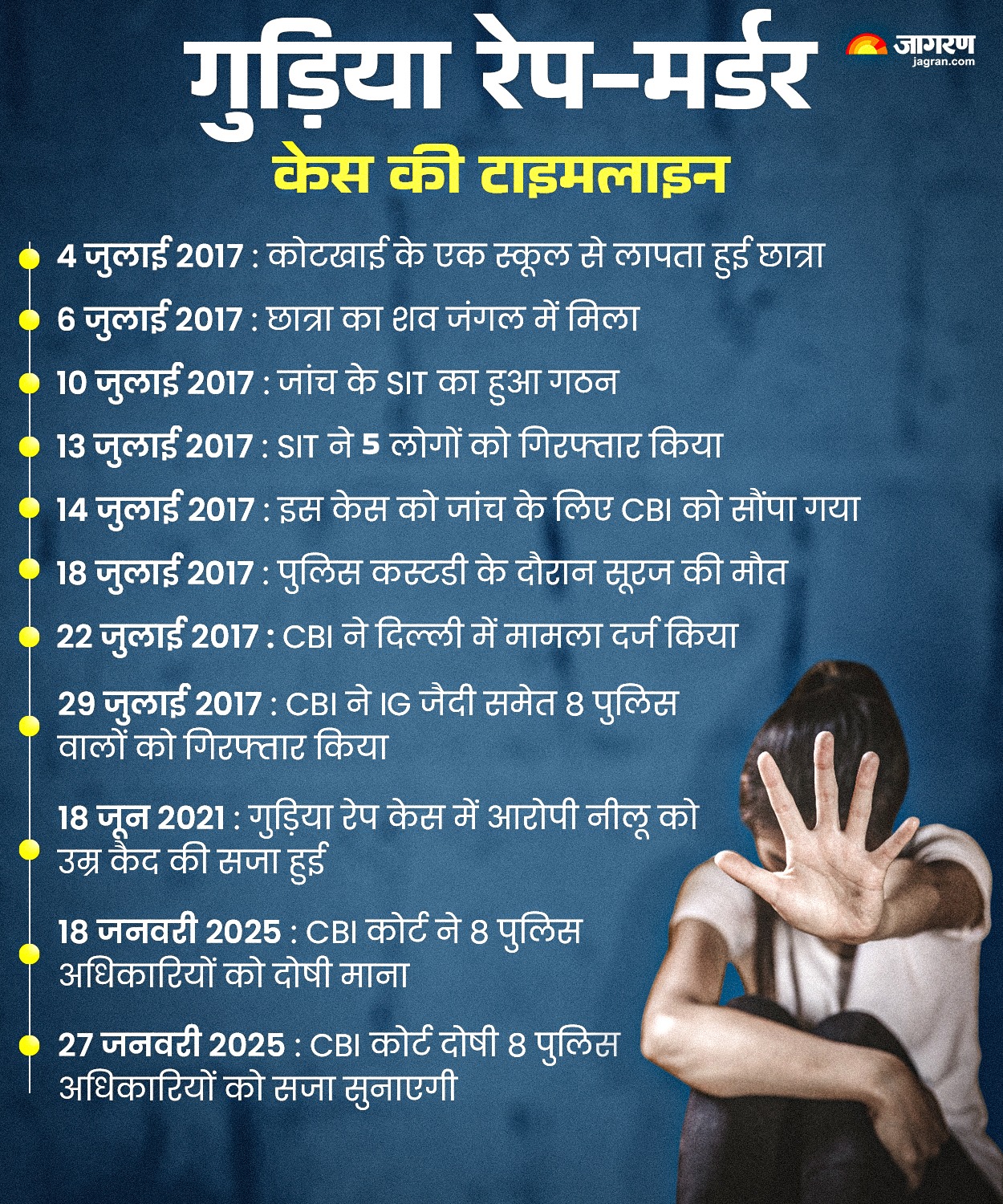 डिजिटल डेस्क, शिमला। Gudiya Rape Murder Case: हिमाचल प्रदेश के बहुचर्चित गुड़िया मर्डर केस में नेपाली युवक की पुलिस हिरासत में हुई हत्या के मामले में चंडीगढ़ सीबीआई की विशेष अदालत ने हिमाचल के IG जहूर एच जैदी समेत आठ पुलिसकर्मियों को दोषी करार दिया था। सोमवार को इन 8 पुलिस अधिकारियों को चंडीगढ़ की सीबीआई कोर्ट सजा सुनाएगी।
