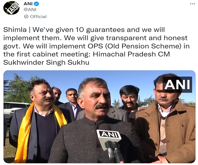 Himachal: हिमाचल के CM सुक्खू बोले- 'पहली कैबिनेट में पुरानी पेंशन योजना व 300 यूनिट निशुल्क बिजली होगी लागू'