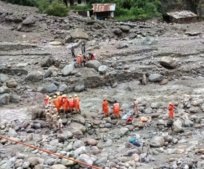 शिमला में बादल फटने से तबाही, लोगों को खड्ड से निकालते हुए एनडीआरएफ के जवान। pic.twitter.com/QMQo1CgaXJ