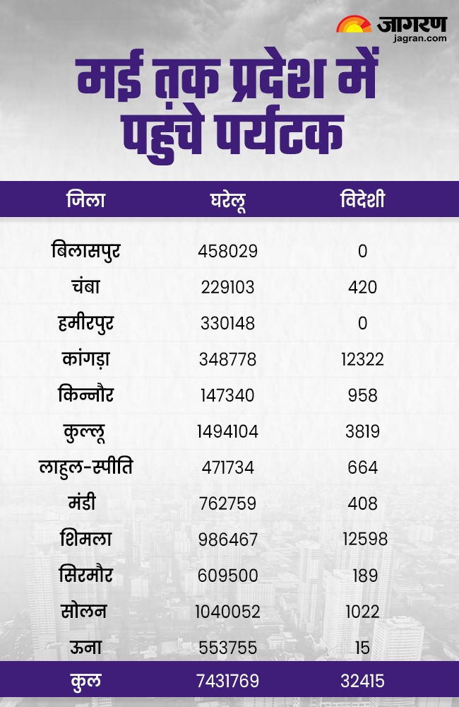 मई तक हिमाचल प्रदेश में पहुंचे पर्यटकों की संख्या