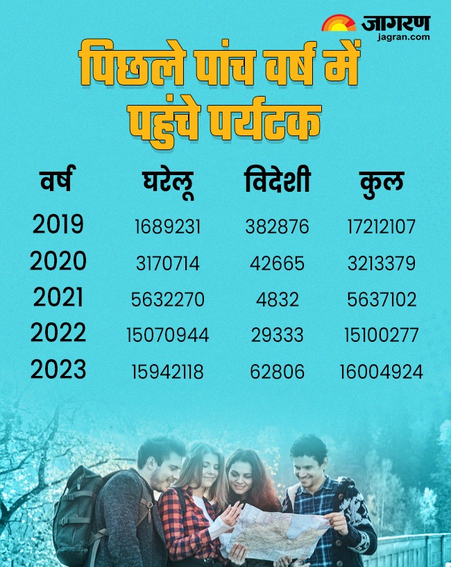 इस वर्ष मई तक 74,64,148 पयर्टक पहुंचे थे। इसमें घरेलू पर्यटकों की संख्या 74,31,769 और विदेशी पर्यटकों की संख्या 32,415 रही। कोरोनाकाल से पहले वर्ष 2019 के दौरान 1,72,12,107 करोड़ पर्यटक पहुंचे थे।