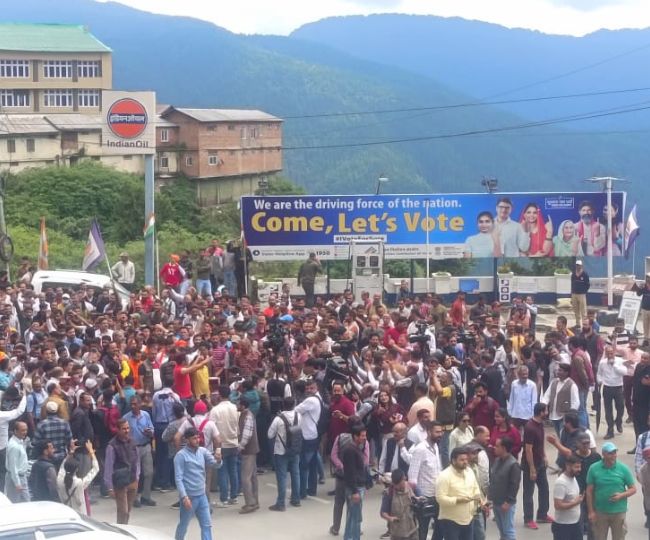 संजौली के मस्जिद में कथित अवैध निर्माण को लेकर प्रदर्शन कर रहे हिंदू संगठनों और पुलिस के बीच झड़प के दौरान पानी की बौछारें और नारेबाजी जारी रही। प्रदर्शनकारियों को रोकने के लिए पुलिस वॉटर कैनन का इस्तेमाल कर रही है।