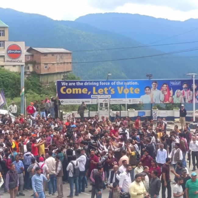 मामला सियासत कर ही नहीं रहा बल्कि दो धर्मों की लड़ाई में भी तब्दील हो गया। संजौली मस्जिद अवैध निर्माण का मामला इतना गर्मा गया कि हिंदू संगठनों का प्रदर्शन लगातार जारी है। चौड़ा मैदान से लेकर संजौली तक हजारों की संख्या में हिंदू संगठनों के लोगों ने अवैध रूप से बनी मस्जिद को तोड़ने की मांग की।