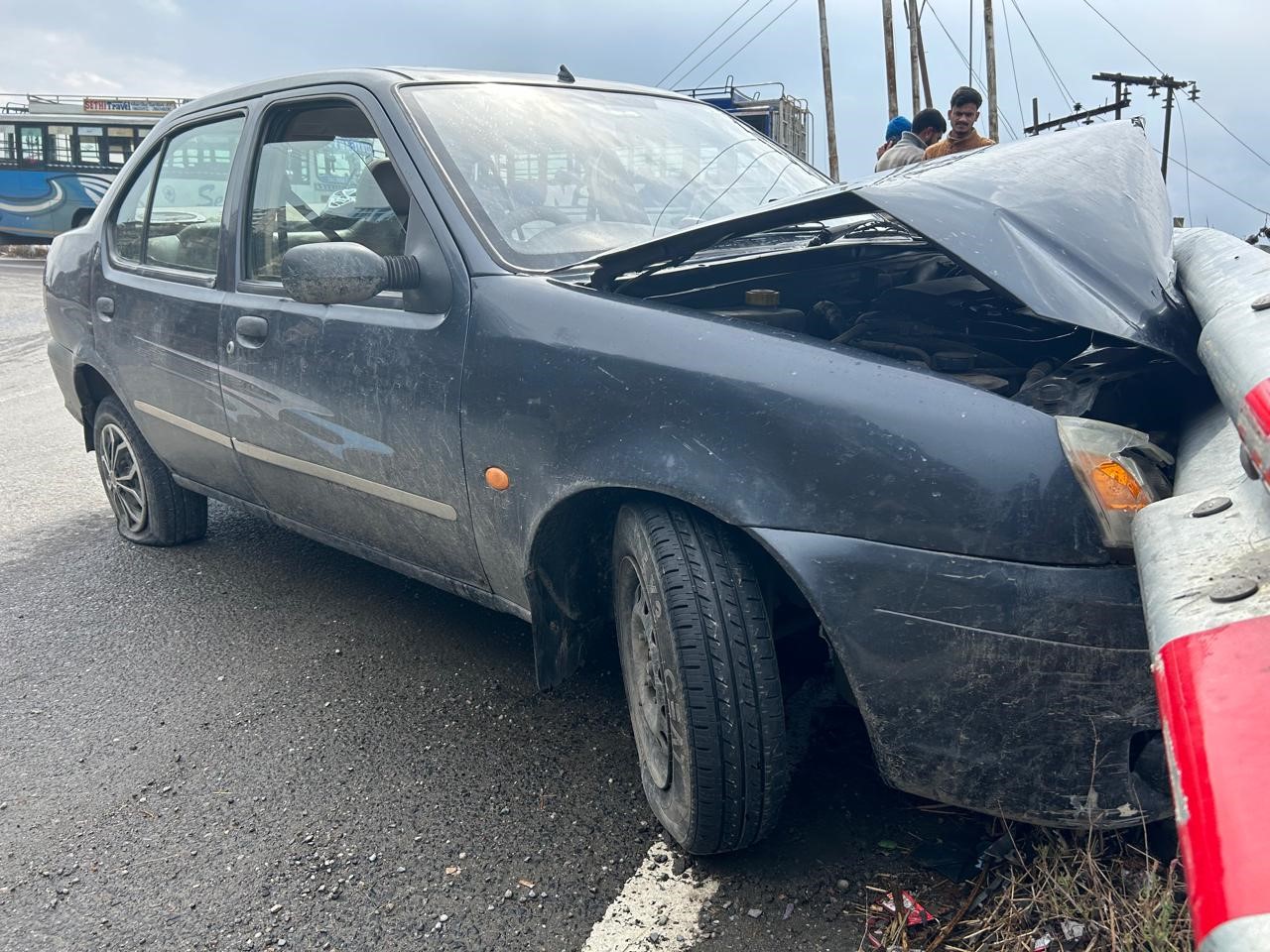 फोटो कैप्शन- ठियोग बाईपास में क्रेश बेरियर से टकराई गाड़ी।
